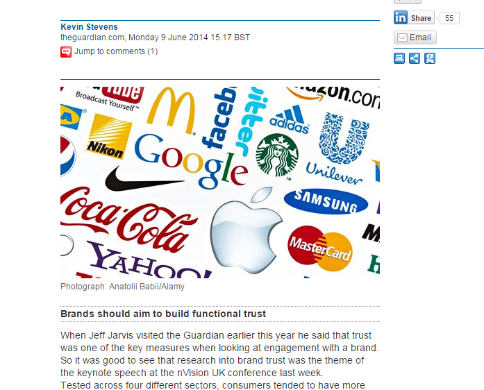 That image or branding is often absorbed as being true. I remember myself in my early 20s feeling some smug pride as I rode the tube in London reading my copy of “The Guardian”. The image I was presenting was “Look I’m smart and a progressive person, can’t you see I am reading The Guardian.” Back then, I identified myself as a “Guardian reader” and saw the paper as expressing my idealism and politics. Coming from Brisbane Australia where literally every single newspaper, national and local, is owned by the Murdoch press, The Guardian was breath of fresh air. It seemed a lone voice, along with the Independent, that provided real news and some actual progressive view global and current affair. Over time I grew out of this loyal identification but I am sure there are still millions who haven’t realised that the Guardian, like any other brand, targets our sense of trust and identity in the pursuit of profit.