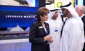 Marillyn. A. Hewson, CEO of Lockheed Martin selling her wares.Blowing stuff up and killing people is big business.