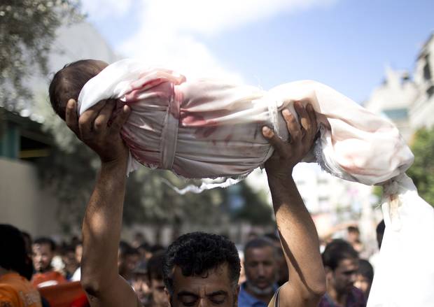 The lifeless body of this boy has created an outcry, and understandably so, yet how many other children are dead as a direct or indirect outcome of our government’s polices? We only need to look at Israel’s most recent assault on Gaza, with the Orwellian title “Operation Protective Edge” to get some idea of how many dead children’s blood we have on our hands. 490 children in total murdered, cut to pieces, eviscerated and decapitated, all brutally and violently put to death for the sole reason of being born on the wrong side of a wall at the wrong time. What would have been the public’s reaction if images of these slaughtered children appeared of the front cover of every national tabloid? Outrage, commendation and immediate pressure on our government to stop supporting Israel’s murderous policies? There are some absolutely heart-wrenching and deeply distressing images of children in Gaza, either severely maimed or murdered. One in particular that just etched in my brain is a father carrying what looks like his 5-year-old daughter with both her legs blown off. The looks of pain, panic and anguish on both their faces is unforgettable; it’s humanity at its worst. Predictably so, that image never made it onto the front page of any UK newspaper, or any page at all.